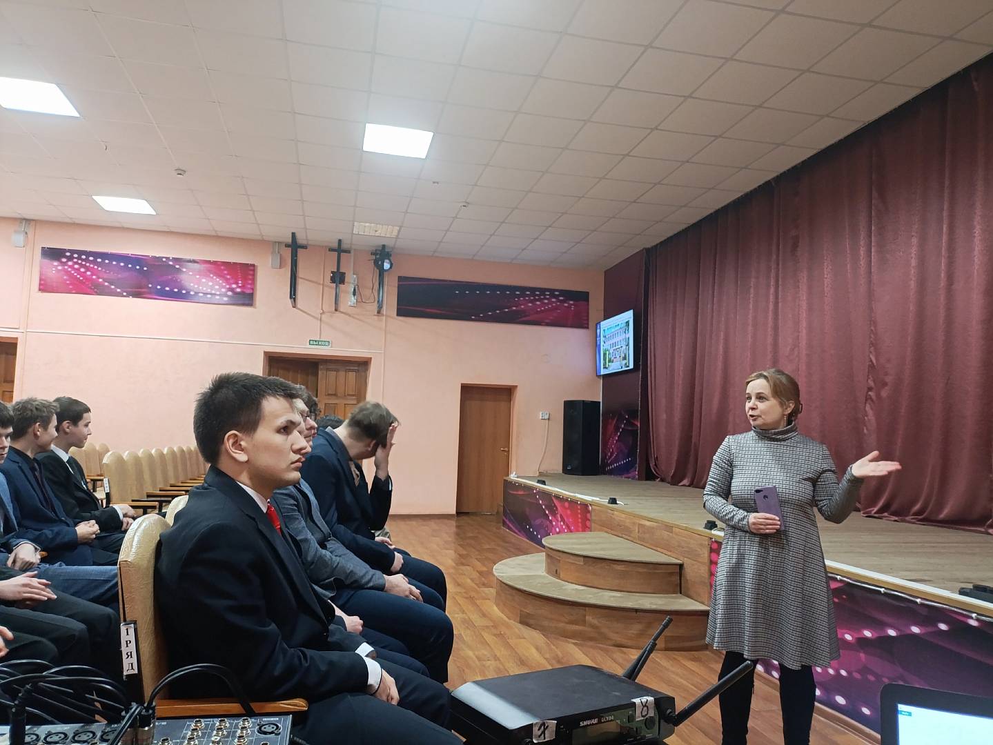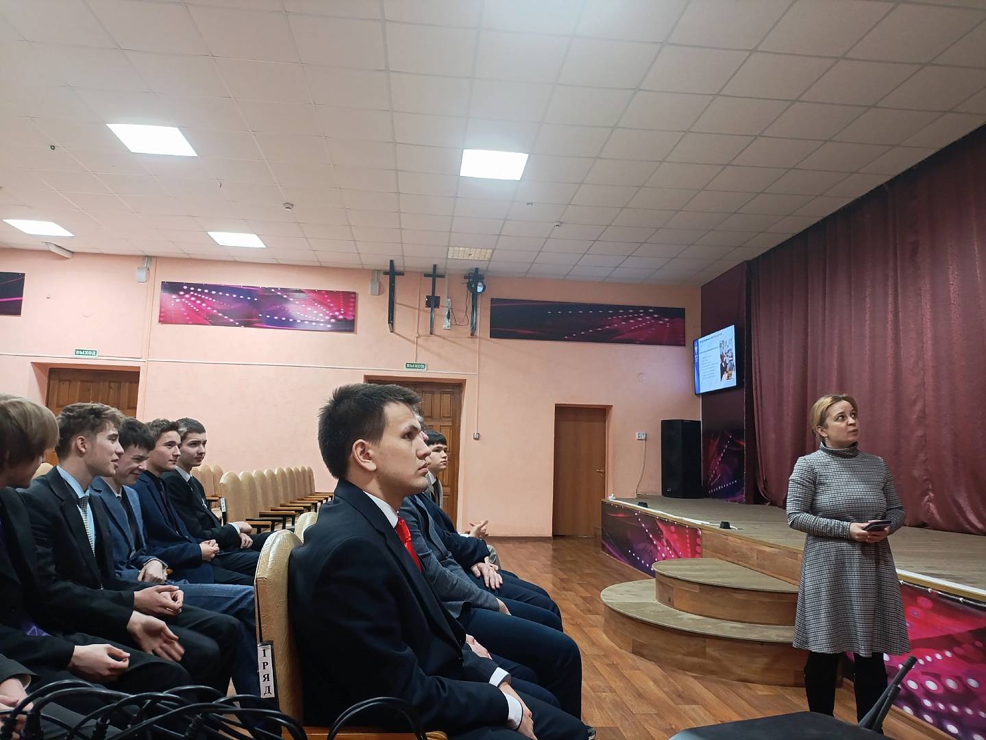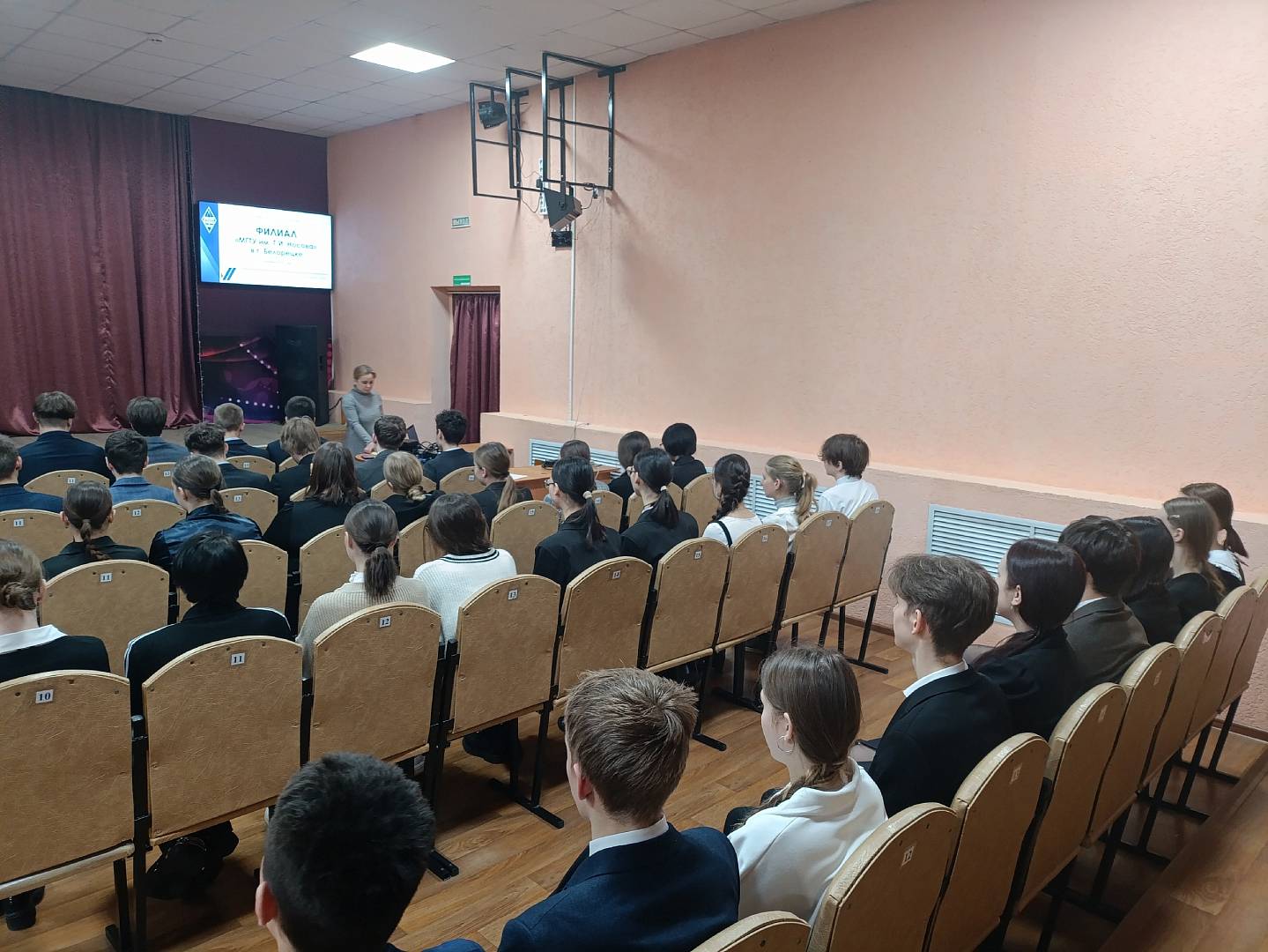 В конце выступления были перечислены преимущества обучения в филиале, такие как: получение престижной и востребованной профессии, индивидуальный подход к студентам, диплом головного вуза, комфортные условия обучения, гарантированное трудоустройство, возможность совмещать учебу и работу.