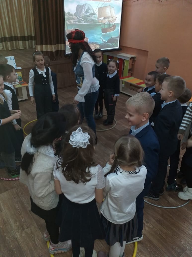 В фойе ребят встретил капитан, и началось путешествие в мир книг. Ребята сразу оказались в трюме корабля- в хранилище книг. Здесь царила особая атмосфера: высились стеллажи с книгами, как настоящие мачты корабля, а сколько отсеков!!!!-настоящий лабиринт, а специфический запах книг, его больше нигде не встретишь. В отсеке библиотечного корабля- детском- дети получили зашифрованное послание из настоящей морской бутылки. Дети с удовольствием отгадывали героев произведений, наперебой уточняли подробности персонажей…На самой главной палубе-в читальном зале- ребят ждал пират, который сожалел, что в своё время не читал книг. Ребята помогли ему открыть сундук с главной книгой -энциклопедией, рассказали правила обращения с книгой. Пират в благодарность подарил и увлекательный танец, и подвижную игру.
