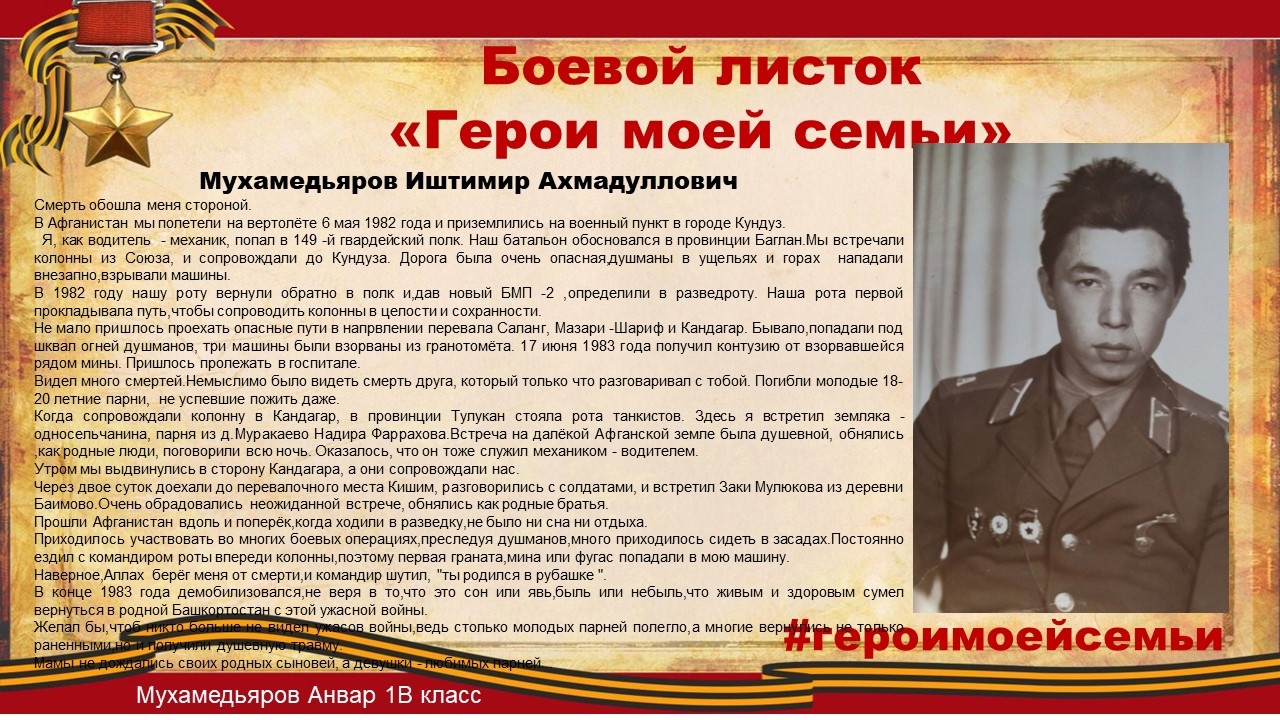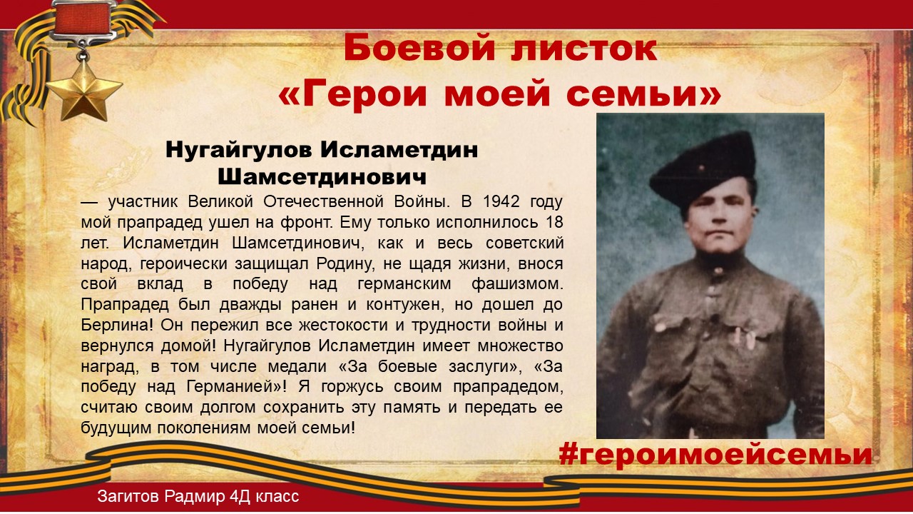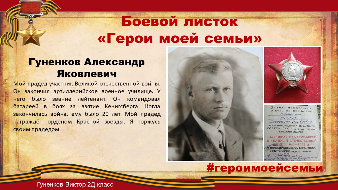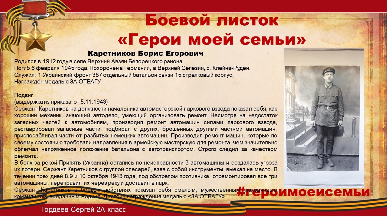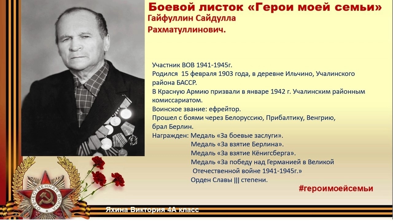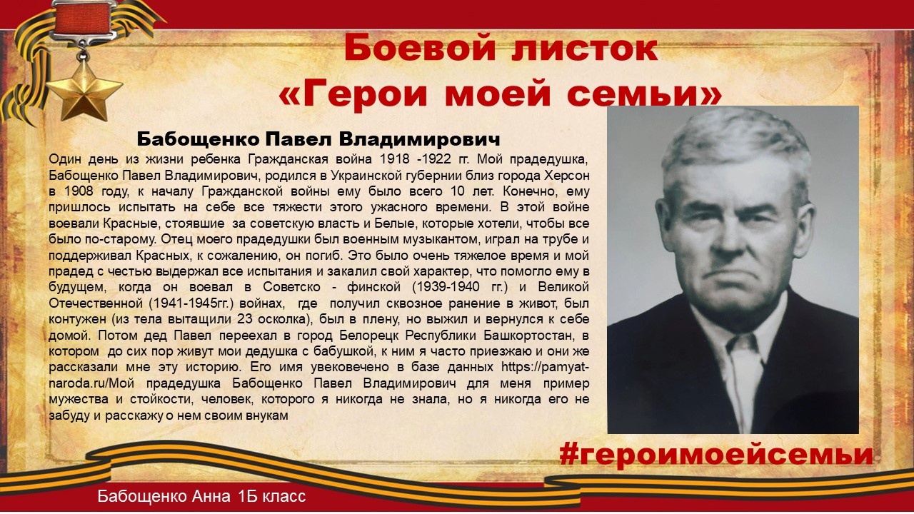 Учащиеся МОБУ Гимназия №14 г. Белорецк приняли участие в акции Боевые листки «Герои моей семьи» и рассказали о подвигах своих прадедов.